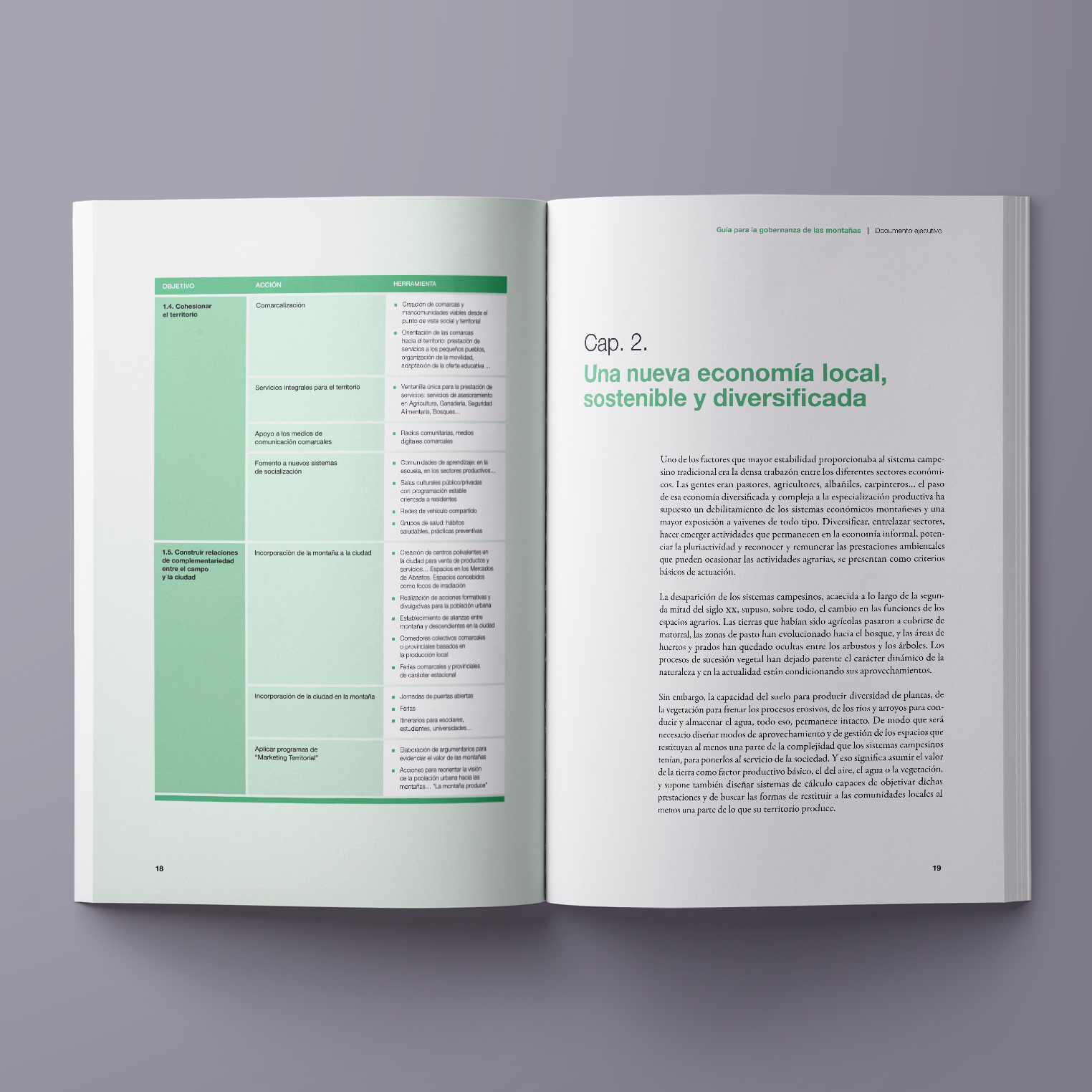 La guía presenta más de 150 medidas con el objetivo de renovar y actualizar el potencial que las montañas encierran y promover formas de articulación territorial en la que estas regiones puedan integrarse. Textos de Ramiro Palacios, Trebolar.